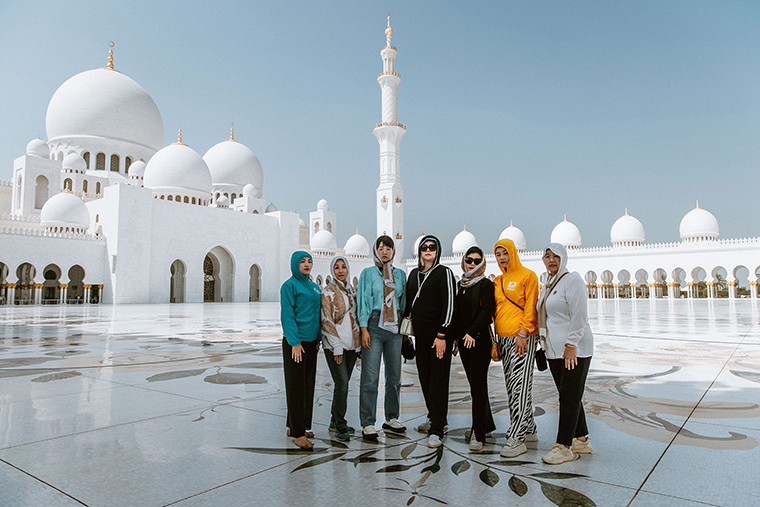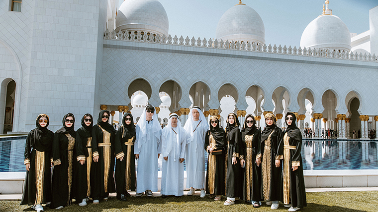 在阿布扎比,謝赫扎耶德清真寺就是阿拉伯人虔誠信仰與物質(zhì)繁榮的完美結(jié)合。潔白無瑕的外觀、五彩奪目的內(nèi)飾,恢弘肅穆,莊嚴(yán)圣潔。聽著清真寺傳來的禱告聲,邂逅穿著傳統(tǒng)長袍的阿拉伯人,它的華美和細(xì)膩,讓綠之韻家人們感覺仿佛走入了一個夢境。