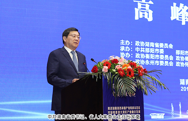 全國政協(xié)副主席梁振英出席論壇并講話,他表示:粵港澳大灣區(qū)的發(fā)展不僅讓區(qū)域內(nèi)的合作更加密切,灣區(qū)亦可作為一個整體“走出去”,這將帶來更大的發(fā)展機遇。中共湖南省委書記、省人大常委會主任杜家毫發(fā)表致辭。他在致辭中表示:粵港澳大灣區(qū)建設(shè)是中央親自謀劃、親自部署、親自推動的國家戰(zhàn)略。多年來,湖南的改革開放與粵港澳地區(qū)的發(fā)展緊密相連,對接粵港澳大灣區(qū)是湖南新時期對外開放的重要機遇,也是廣大企業(yè)的重大商機。舉辦本次高峰論壇就是為了搶抓發(fā)展機遇,主動對接國家戰(zhàn)略,深化拓展與大灣區(qū)乃至世界各地的全面合作,促進湖南經(jīng)濟高質(zhì)量發(fā)展。