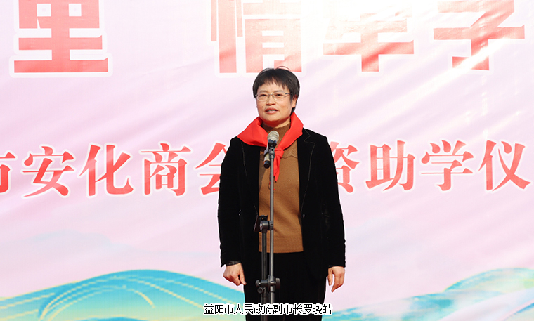 活動(dòng)最后,益陽(yáng)市人民政府副市長(zhǎng)羅曉皓講話。她首先代表益陽(yáng)市委、市政府向長(zhǎng)沙市安化商會(huì)的愛(ài)心企業(yè)家表示崇高的敬意和衷心的感謝。參加此次活動(dòng),她深受感染和觸動(dòng),一是感恩家鄉(xiāng)山山水水、父老鄉(xiāng)親的養(yǎng)育,感恩母校的培育,讓我擁有了走出大山的機(jī)會(huì);二是感謝各位企業(yè)家在今年經(jīng)濟(jì)形勢(shì)下行的情況下,克服困難,慷慨解囊,走進(jìn)大山資助山村教育;三是希望家鄉(xiāng)興旺發(fā)達(dá),希望安化的教育事業(yè)蒸蒸日上,希望有更多的人才扎根山村教育,培根育苗播種,希望同學(xué)們心懷夢(mèng)想、發(fā)奮讀書,以期未來(lái)建設(shè)家鄉(xiāng),回報(bào)社會(huì)。