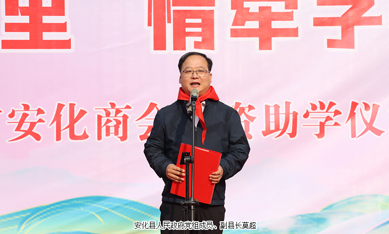 安化縣人民政府黨組成員、副縣長(zhǎng)莫超表示,近年來(lái)縣委縣政府始終把教育作為重中之重的民生,始終把教育事業(yè)擺在優(yōu)先發(fā)展位置,以辦人民滿意的教育為宗旨,緊緊圍繞打造區(qū)域教育強(qiáng)縣目標(biāo),完善機(jī)制、加大投入、優(yōu)化資源,有力推動(dòng)了全縣教育事業(yè)持續(xù)健康發(fā)展。但是,安化地處山區(qū),仍然有相當(dāng)一部分農(nóng)村偏遠(yuǎn)學(xué)校教育教學(xué)設(shè)施待改善,優(yōu)質(zhì)師資力量急需補(bǔ)充。在政府部門著力部署解決的同時(shí),社會(huì)各界人士也紛紛向我們伸出援助之手,捐資助學(xué)。今天長(zhǎng)沙市安化商會(huì)的愛(ài)心企業(yè)家們慷慨解囊為我縣馬路鎮(zhèn)蒼場(chǎng)完小送來(lái)校服、體育器材和資金支持。這種善舉,用實(shí)際行動(dòng)在全社會(huì)倡導(dǎo)了尊師重教的良好風(fēng)尚,也充分體現(xiàn)了從安化走出去的企業(yè)家們情寄安化、心系教育的桑梓情懷。希望在座的各位同學(xué)要珍惜擁有、懂得感恩。在現(xiàn)在與將來(lái),要始終保持謙虛謹(jǐn)慎、端正積極、奮發(fā)向上的態(tài)度,勤學(xué)苦練、刻苦學(xué)習(xí),用優(yōu)異的成績(jī)回報(bào)愛(ài)心企業(yè)的資助,并將這份大愛(ài)傳遞下去。