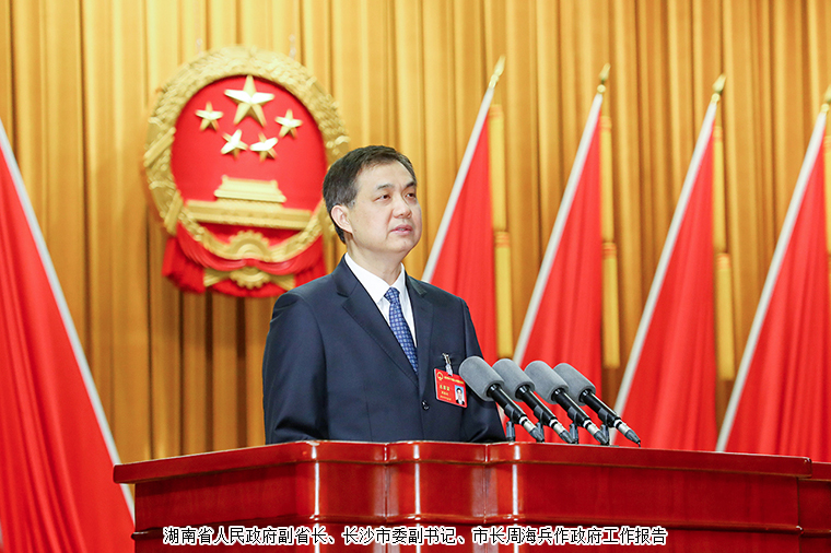 在熱烈的掌聲中,湖南省人民政府副省長、長沙市委副書記、市長周海兵向大會(huì)報(bào)告政府工作。報(bào)告共分三部分:一是2023年工作回顧;二是2024年工作重點(diǎn);三是提高政府治理能力和水平。周海兵說,2023年是全面貫徹黨的二十大精神的開局之年,是三年新冠疫情防控轉(zhuǎn)段后經(jīng)濟(jì)恢復(fù)發(fā)展的一年。我們?cè)谑∥?、省政府和市委的?jiān)強(qiáng)領(lǐng)導(dǎo)下,全面貫徹黨的二十大精神,深入開展學(xué)習(xí)貫徹習(xí)近平新時(shí)代中國特色社會(huì)主義思想主題教育,聚焦實(shí)現(xiàn) “三高四新”美好藍(lán)圖,深入踐行八個(gè) “走在前、作示范”要求,全力打好 “發(fā)展六仗”,踔厲奮發(fā)、創(chuàng)新實(shí)干,交出了一份高質(zhì)量發(fā)展的合格答卷。