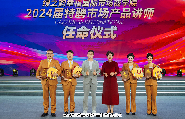 以熱愛(ài)守護(hù)幸福,用幸福創(chuàng)造奇跡。綠之韻幸福國(guó)際商學(xué)院自成立以來(lái),成為綠之韻幸福國(guó)際的文化名片,以最具市場(chǎng)化的姿態(tài)為幸福代言人提供最為廣闊的舞臺(tái)。在3000多位幸福代言人的見(jiàn)證下,現(xiàn)場(chǎng)舉行了盛大的任命儀式,綠之韻健康專(zhuān)家委員會(huì)專(zhuān)家委員、綠之韻幸福國(guó)際市場(chǎng)商學(xué)院院長(zhǎng)侯俊霞,綠之韻幸福國(guó)際市場(chǎng)商學(xué)院特聘教授、綠韻悅喜智能科技有限公司首席研發(fā)專(zhuān)家駱春崗共同為2024屆特聘市場(chǎng)產(chǎn)品講師頒發(fā)聘書(shū)。綠之韻國(guó)際商學(xué)院執(zhí)行院長(zhǎng)黎芋成、綠之韻集團(tuán)運(yùn)營(yíng)中心執(zhí)行總經(jīng)理、綠之韻國(guó)際商學(xué)院常務(wù)副院長(zhǎng)陳敏共同為2024屆市場(chǎng)商學(xué)院陪導(dǎo)團(tuán)頒發(fā)聘書(shū)。綠之韻國(guó)際商學(xué)院執(zhí)行院長(zhǎng)黎芋成為幸福國(guó)際市場(chǎng)商學(xué)院副院長(zhǎng)袁夢(mèng)頒發(fā)聘書(shū)。