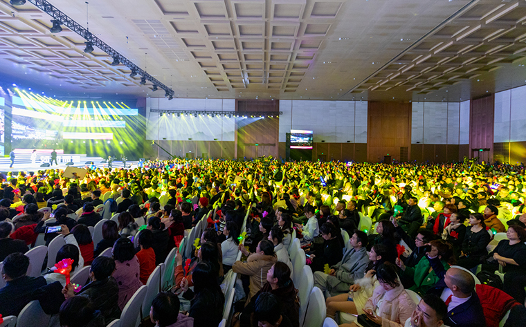 大會(huì)伊始,四位老師與幸福代言人娓娓道來(lái),通過(guò)情景劇的形式讓大家更了解產(chǎn)品更懂一線市場(chǎng)的風(fēng)采,一段段故事生動(dòng)再現(xiàn),一個(gè)個(gè)故事感人至深,引發(fā)現(xiàn)場(chǎng)家人們的強(qiáng)烈共鳴。隨后,在婉轉(zhuǎn)優(yōu)雅的旋律中,所有的幸福奮斗者們齊唱響綠之韻集團(tuán)二十周年紀(jì)念曲《愿世間所有的美好如約而至》,在溫馨熱鬧的氛圍中共赴這場(chǎng)滿載美好與期望的年度盛會(huì)。