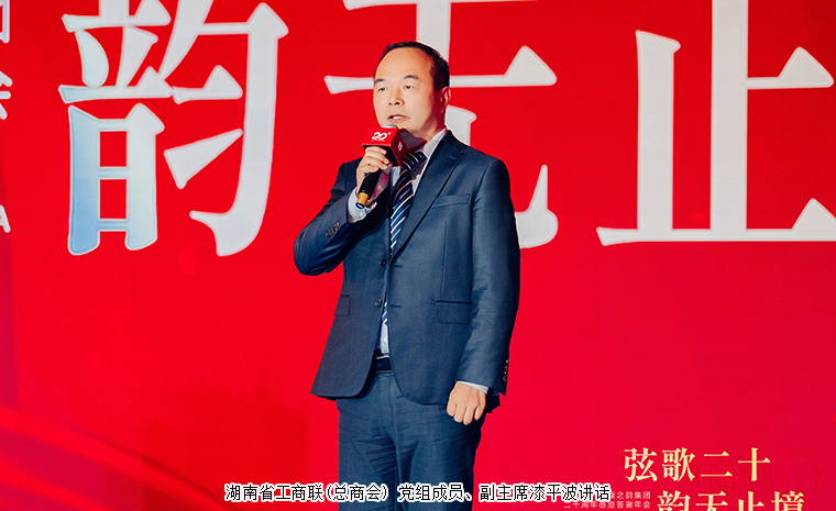 湖南省工商聯(lián)(總商會) 黨組成員、副主席漆平波講話。他代表湖南省工商聯(lián)向此次活動的舉辦表示祝賀。綠之韻集團作為一家創(chuàng)立20年的知名企業(yè),在胡國安董事長帶領(lǐng)下,始終堅持以提供優(yōu)質(zhì)的產(chǎn)品和服務(wù)為導(dǎo)向,誠信經(jīng)營、穩(wěn)健發(fā)展,并積極投身公益,累計捐贈款物8400萬元,先后被授予“湖南省守合同重信用企業(yè)”和“國家高新技術(shù)企業(yè)”。這些成績的取得,既是對當代企業(yè)家精神最好的詮釋,也是湖南民營經(jīng)濟蓬勃發(fā)展的生動縮影。20年的茁壯成長證明了綠之韻的生命力,20年的市場管理證明了綠之韻的創(chuàng)造力,20年的責(zé)任擔當證明了綠之韻的公信力。未來,希望綠之韻能繼續(xù)砥礪前行,做有愛心、有良心、有尊嚴的企業(yè),努力實現(xiàn)“建百年企業(yè),創(chuàng)世界名牌”的企業(yè)目標,為省市經(jīng)濟發(fā)展作出新的更大貢獻。近年來,湖南省委省政府高度重視民營經(jīng)濟發(fā)展,特別關(guān)心民營企業(yè)的成長。多措并舉優(yōu)化營商環(huán)境,助力企業(yè)高質(zhì)量發(fā)展。熱烈歡迎和期待更多的海內(nèi)外企業(yè)家來湖南觀光、考察和投資興業(yè),省工商聯(lián)將竭誠為您提供全面周到的服務(wù)和支持。他呼吁在座的各位企業(yè)家,繼續(xù)把企業(yè)發(fā)展更好地融入到國家、全省發(fā)展大局,為以中國式現(xiàn)代化實現(xiàn)中華民族偉大復(fù)興、加快建設(shè)社會主義現(xiàn)代化新湖南作出自己應(yīng)有的貢獻。最后,他預(yù)祝本次年會取得圓滿成功。