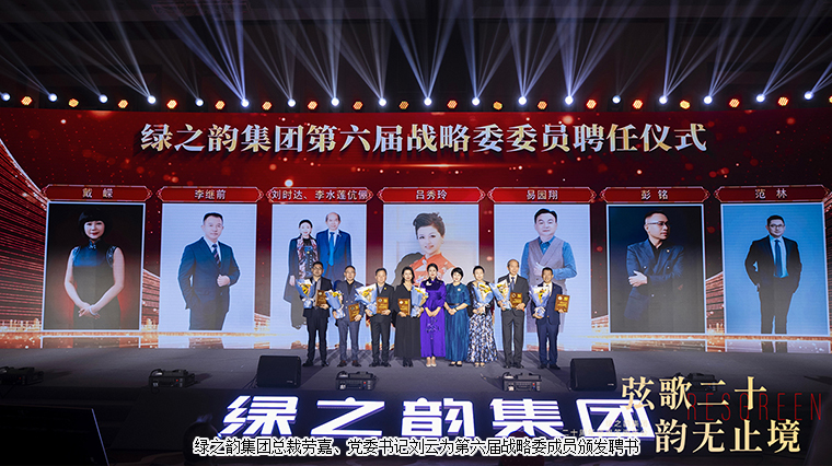 偉大的時代呼喚偉大的精神,崇高的事業(yè)需要榜樣的引領(lǐng)。企業(yè)的長足發(fā)展,離不開領(lǐng)導(dǎo)者的引領(lǐng),在年會的現(xiàn)場,綠之韻集團第六屆戰(zhàn)略委、策略委成員集體亮相。綠之韻集團常務(wù)副總裁胡均安、副總裁夏運良、市場營銷中心總經(jīng)理戴三省、常務(wù)副總經(jīng)理梅其慧分別上臺為第六屆策略委成員頒發(fā)聘書。綠之韻集團總裁勞嘉,黨委書記劉云為第六屆戰(zhàn)略委成員李繼前、劉時達李水蓮伉儷、呂秀玲、易園翔、彭銘、范林頒發(fā)聘書。