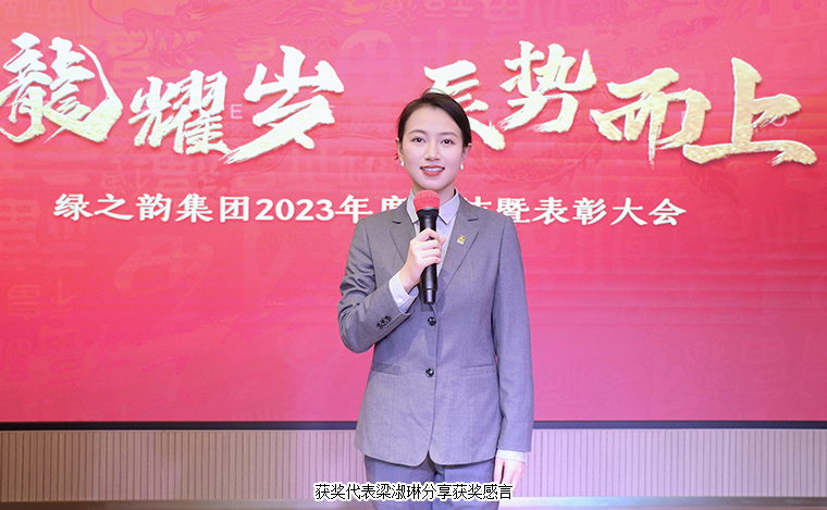 在挫折艱難中逆風(fēng)飛揚,在風(fēng)云激蕩里勇毅前行。過去一年,我們一路奔跑,收獲滿懷驚喜,歲聿云暮,回眸2023年,是這些熠熠生輝的不凡力量,讓時光璀璨閃耀。會上頒發(fā)了2023年度綠之韻集團黨委“先進基層黨組織”“優(yōu)秀共產(chǎn)黨員”“優(yōu)秀黨務(wù)工作者”“最佳微黨課”“綠之韻服務(wù)能手”“最佳新人獎”“優(yōu)秀指導(dǎo)老師”“綠之韻風(fēng)范獎”“優(yōu)秀管理者”等獎項。公司高管團隊依次為獲獎團隊及優(yōu)秀個人頒發(fā)榮譽獎杯和證書。獲獎代表于蕓蕓、梁淑琳在會上分享獲獎感言,表達了獲得榮譽的激動心情,對綠之韻的深厚感情以及為公司發(fā)展再作貢獻的熱情。
