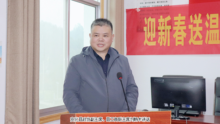 活動(dòng)最后,安化縣政協(xié)副主席、縣工商聯(lián)主席劉暢術(shù)講話。他首先代表縣委縣政府、縣工商聯(lián)向胡國安董事長(zhǎng)及團(tuán)隊(duì)表示崇高的敬意和衷心的感謝。他表示,胡國安董事長(zhǎng)作為從安化走出去的優(yōu)秀知名企業(yè)家代表,長(zhǎng)期以來情系家鄉(xiāng),從建橋修路,精準(zhǔn)扶貧到脫貧攻堅(jiān),從產(chǎn)業(yè)幫扶,愛心助學(xué)到鄉(xiāng)村振興,胡國安董事長(zhǎng)在愛心奉獻(xiàn)、回報(bào)桑梓的公益道路上一直不遺余力、竭盡所能,體現(xiàn)了一位企業(yè)家高度的社會(huì)責(zé)任感和使命感。當(dāng)前,安化縣各級(jí)部門到地方都在開展“迎新春 送溫暖”慰問活動(dòng),為困難群眾送上黨和政府的親切關(guān)懷,并致以新春的誠摯問候和美好祝愿。未來,安化縣工商聯(lián)也會(huì)充分發(fā)揮好聯(lián)絡(luò)橋梁的作用,積極動(dòng)員和帶領(lǐng)愛心企業(yè)開展好新春慰問系列活動(dòng),為保證人民群眾過個(gè)快樂祥和幸福年作出努力,不折不扣把各項(xiàng)政策執(zhí)行好、落實(shí)好,在思想上多關(guān)心、生活上多照顧、精神上多關(guān)懷,從精神到物質(zhì),盡可能地幫助有需要的鄉(xiāng)親們解決實(shí)際困難和問題。