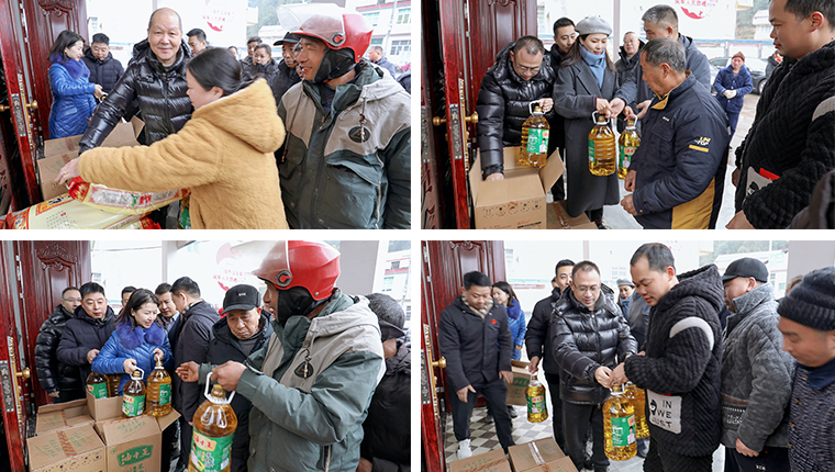 近日,綠之韻集團(tuán)積極響應(yīng)黨和政府的號(hào)召,通過湖南省慈善總會(huì)捐資100萬助力全省范圍內(nèi)新春慰問活動(dòng)的開展。2024年2月2日,冒著深冬嚴(yán)寒、冰霜凍雨,湖南省慈善總會(huì)副會(huì)長(zhǎng)、長(zhǎng)沙市人大代表、綠之韻集團(tuán)董事長(zhǎng)胡國安,湖南省政協(xié)委員、綠之韻集團(tuán)總裁、綠之韻公益基金會(huì)理事長(zhǎng)勞嘉,安化縣人大代表、綠之韻集團(tuán)常務(wù)副總裁胡均安,綠之韻集團(tuán)市場(chǎng)營(yíng)銷中心總經(jīng)理戴三省,安化縣政協(xié)委員、綠之韻集團(tuán)副總經(jīng)理胡武安,瀏陽市政協(xié)委員、綠之韻公益基金會(huì)秘書長(zhǎng)蔣文,綠之韻集團(tuán)市場(chǎng)營(yíng)銷中心業(yè)務(wù)總經(jīng)理趙蕾等集團(tuán)高管帶領(lǐng)市場(chǎng)領(lǐng)導(dǎo)一行從長(zhǎng)沙出發(fā),驅(qū)車200余公里回到家鄉(xiāng)安化開展新春慰問公益活動(dòng),為當(dāng)?shù)氐睦щy家庭送去新春的祝福和關(guān)愛。安化縣政協(xié)副主席、縣工商聯(lián)主席劉暢術(shù),安化縣統(tǒng)計(jì)局黨組書記寧偉,中共冷市鎮(zhèn)黨委書記胡寶成,冷市鎮(zhèn)鎮(zhèn)長(zhǎng)夏剛花,胡家村村支書胡利民帶領(lǐng)村支兩委、村民代表參加活動(dòng)。