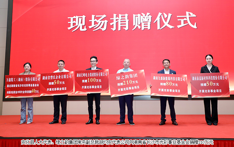 大會舉行了現(xiàn)場捐贈儀式。安化縣人大代表、綠之韻集團常務(wù)副總裁胡均安代表公司向湖南省長沙市光彩事業(yè)基金會捐贈210萬元用于開展光彩事業(yè)公益項目。大會還邀請財會專家作基金會公益政策宣講、愛心企業(yè)家代表作分享發(fā)言。