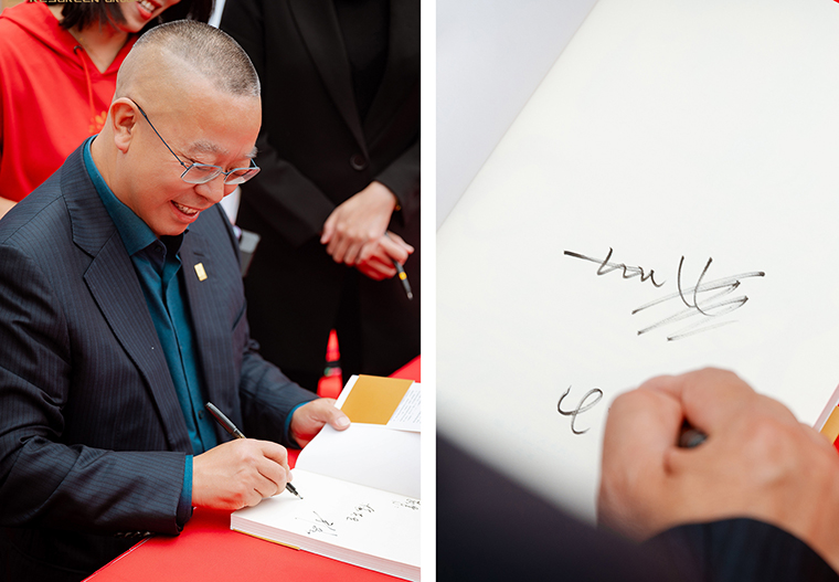 新書簽售會上,簽售氣氛十分火爆,不到一個小時,1500余冊《洞見的力量》便被搶售一空。隨后,綠之韻家人們有序地排起了長隊,等候簽名。胡國安董事長將家人、讀者遞過來的每一本書都簽上自己的名字,并合影留念。