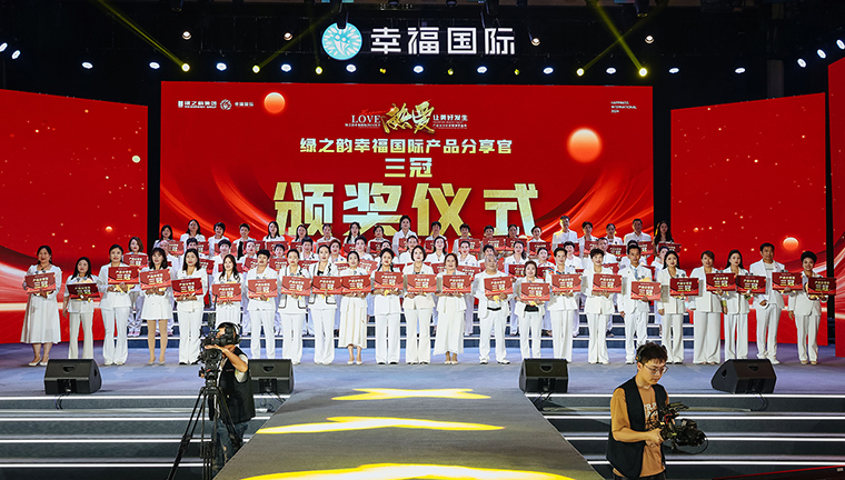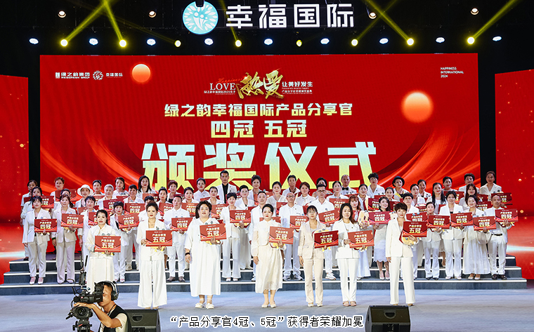 2024年4月23日,熱愛,讓美好發(fā)生——綠之韻幸福國際2024春季產(chǎn)品分享官榮耀頒獎(jiǎng)盛典成功舉行。綠之韻集團(tuán)副總裁、幸福導(dǎo)師夏運(yùn)良及運(yùn)營(yíng)團(tuán)隊(duì)與來自全國各地的1500余名綠之韻家人匯聚一堂,共襄盛舉。大會(huì)全程通過PC、移動(dòng)端在線互動(dòng)視頻直播,線上近30000人次共同收看和分享了大會(huì)盛況。