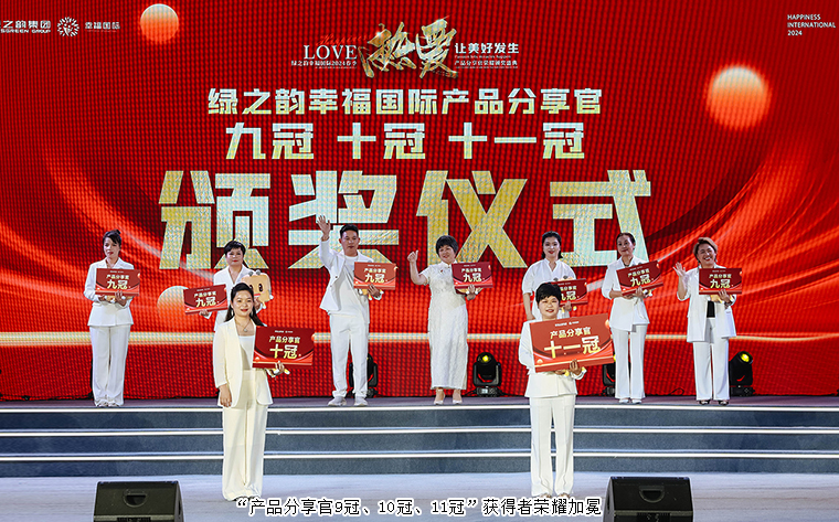 有人說,世界是由熱愛者創(chuàng)造的,每個(gè)劃時(shí)代的第一步,都是源自熱愛的驅(qū)動(dòng)。在“科技讓中醫(yī)養(yǎng)生進(jìn)萬家”這條充滿挑戰(zhàn)的路上,他們懷揣熱愛,不斷向前,走過了一段又一段泥濘和崢嶸,創(chuàng)造了一個(gè)又一個(gè)奇跡和光榮,贏得了綠之韻幸福國際“產(chǎn)品分享官”的稱號(hào)。在現(xiàn)場(chǎng)千余名綠之韻幸福國際家人們的見證下,“產(chǎn)品分享官3冠、4冠、5冠”獲得者身著盛裝,在星光閃爍中走上舞臺(tái),共享榮耀時(shí)刻。