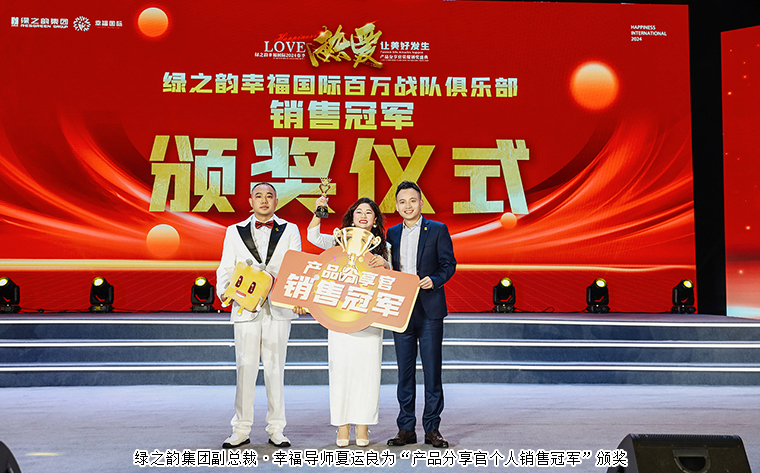 他們,用奮斗到最后一秒的堅(jiān)持,全力以赴的拼搏,毫無保留的交付,上下一心的團(tuán)結(jié),不甘平庸的進(jìn)取,將每一份熱愛化作滋養(yǎng)生命的能量。他們,始終火力全開馳騁在市場(chǎng)一線,永遠(yuǎn)奔跑在沖刺目標(biāo)的道路上;他們,從未膽怯、迎難而上,帶領(lǐng)自己的團(tuán)隊(duì)勇攀一個(gè)又一個(gè)高峰。綠之韻集團(tuán)副總裁、幸福導(dǎo)師夏運(yùn)良為“產(chǎn)品分享官個(gè)人銷售冠軍”頒獎(jiǎng)。幸福代言人黃永志、肖純芬伉儷分享獲獎(jiǎng)感言。綠之韻國際商學(xué)院常務(wù)副院長(zhǎng)、綠之韻集團(tuán)運(yùn)營(yíng)部執(zhí)行總經(jīng)理陳敏,綠之韻健康專家委員會(huì)專家委員、綠之韻幸福國際市場(chǎng)商學(xué)院院長(zhǎng)侯俊霞為“2024年一季度百萬戰(zhàn)隊(duì)”頒獎(jiǎng)。綠之韻國際商學(xué)院執(zhí)行院長(zhǎng)黎芋成為“2024年一季度百萬戰(zhàn)隊(duì)冠軍”頒獎(jiǎng)。