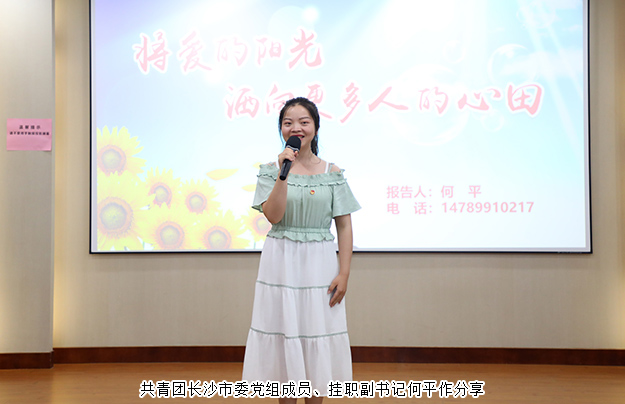 隨后,共青團(tuán)長沙市委黨組成員、掛職副書記何平,以自身經(jīng)歷為例,為大家分享了她的勵(lì)志故事。參加工作之后,她長期致力于青少年公益事業(yè),先后在39所少年宮和學(xué)校開設(shè)了“向日葵姐姐·心靈熱線”等服務(wù),六七年來,共接到聽眾來電1300多人次,回復(fù)郵件和信件4000多封,QQ訪問量達(dá)50多萬人,先后資助了70余位貧困學(xué)生。雖然生活給予了她比常人更多的磨難,但她用自己的親身經(jīng)歷鼓勵(lì)大家,要保持陽光的心態(tài),伸出愛的雙手,把愛灑向更多人的心田。