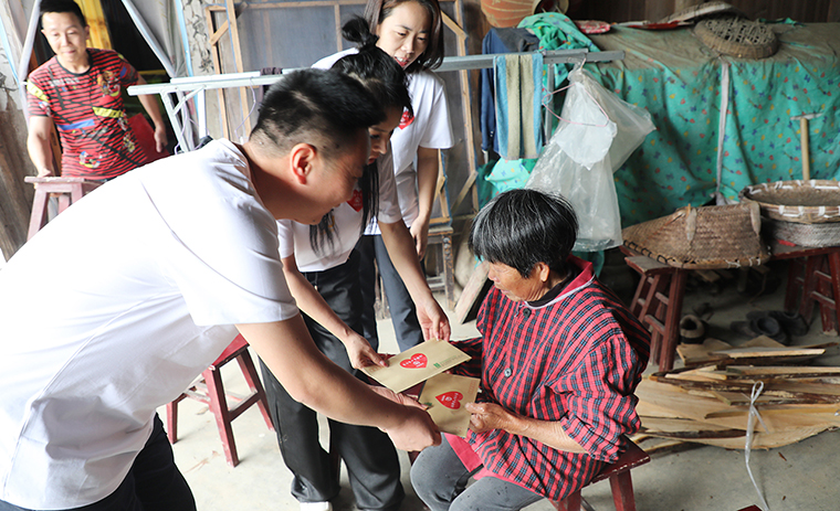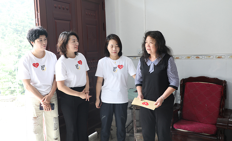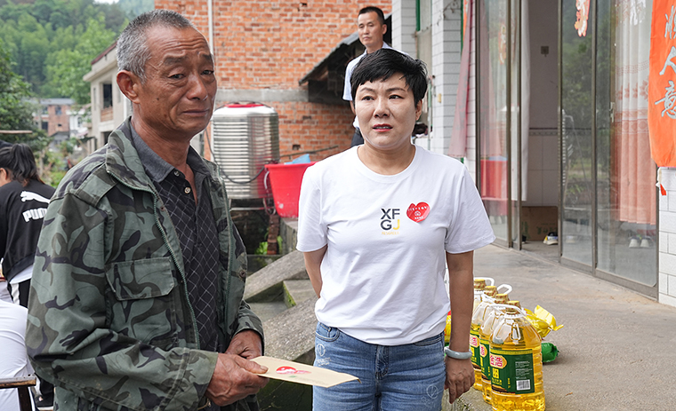 慰問組一行向大山里開了很長(zhǎng)的路,又下車步行了很久,爬過一個(gè)小山坡才來到含海的家里。家里只有他的妻子菊姐在。今年3月,菊姐被檢查出患有肺部腫瘤,安化縣里醫(yī)療條件有限,他們只能租車前往省會(huì)城市長(zhǎng)沙就醫(yī)。前段時(shí)間,菊姐剛在湘雅醫(yī)院做了手術(shù),花費(fèi)了10多萬,現(xiàn)在正處于術(shù)后恢復(fù)期,需要定期復(fù)查和長(zhǎng)期吃藥。面對(duì)慰問組一行,菊姐紅了眼,唯一的女兒遠(yuǎn)嫁,丈夫含海為了籌措醫(yī)藥費(fèi)只能出去打點(diǎn)零工,平常都是隔壁鄰居稍微照應(yīng)下她,“我現(xiàn)在什么都做不了,連為你們泡杯熱茶我都做不到……”夏總握住她的手,親切囑咐她要放松心情,保持樂觀心態(tài),積極面對(duì)生活。