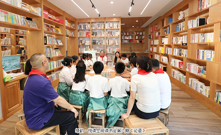 與經(jīng)典同行,和圣賢為伍。讀書分享會上,在老師的帶領(lǐng)下,同學(xué)們對《論語》中的經(jīng)典篇章,通過誦讀、解析、釋義,互相交流并分享自己的感受,共同走進(jìn)孔子的精神世界。讀書會高潮,同學(xué)們共同誦讀《學(xué)而》篇章,“學(xué)而時(shí)習(xí)之,不亦說乎?有朋自遠(yuǎn)方來,不亦樂乎?人不知而不慍,不亦君子乎?”“吾日三省吾身:為人謀而不忠乎?與朋友交而不信乎?傳不習(xí)乎?”……同學(xué)們的朗朗讀書聲環(huán)繞在整個(gè)綠韻書屋。隨后,讀書會特邀嘉賓胡武安、呂秀玲、蔣文分別與同學(xué)們做《論語》讀書交流和人生故事分享,充分鼓勵(lì)同學(xué)們通過讀書會這樣的方式閱讀經(jīng)典,對話先賢,感受中華傳統(tǒng)文化的魅力,獲得人生成長的力量。