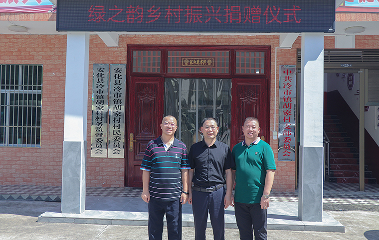 最美不過家鄉(xiāng)水,最親莫過故鄉(xiāng)人?!鞍不俏业募亦l(xiāng),是生我養(yǎng)育我的地方。作為一名從安化大山里走出的企業(yè)家,積極投身到建設(shè)家鄉(xiāng)的事業(yè)中去,是我與生俱來的責(zé)任與使命。”胡國安董事長表示,多年來,綠之韻集團始終堅持把公益事業(yè)上升到企業(yè)發(fā)展戰(zhàn)略高度。在全國各地先后援建了11所希望學(xué)校,投入300萬元在全國各地開展“綠韻圓夢·書香助學(xué)”活動,陸續(xù)投入1000萬元開展“樹人行動”,公益項目還涉及賑災(zāi)濟困、興教助學(xué)、孤殘救助、醫(yī)療衛(wèi)生等多個領(lǐng)域,累計捐贈款物8600多萬元,包括新書《洞見的力量》所有購書款也全數(shù)捐獻給教育振興事業(yè)。鄉(xiāng)村振興一直是綠之韻公益基金會的重要關(guān)注點之一,他也一直最關(guān)心和牽掛家鄉(xiāng)安化的建設(shè)。這一次,再次捐資20萬在胡家村用于美麗村屋建設(shè),希望為家鄉(xiāng)人民打造更具現(xiàn)代鄉(xiāng)村品質(zhì)的美麗宜居鄉(xiāng)村,豐富村民的娛樂文化生活,提高家鄉(xiāng)人民的幸福感、獲得感、滿足感。未來,綠之韻公益基金會將積極參與到胡家村鄉(xiāng)村振興的具體規(guī)劃中,以實際行動踐行社會責(zé)任,為家鄉(xiāng)鄉(xiāng)村振興貢獻更多的智慧和力量。