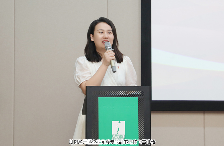 活動最后,瀏陽經(jīng)開區(qū)企業(yè)黨委專職副書記陳飛雪講話。她首先感謝了瀏陽經(jīng)開區(qū)非公黨建第一片區(qū)對園區(qū)非公黨建工作的支持。今天是9.30烈士紀(jì)念日,她向大家分享了自己的曾祖父作為一名烈士英勇犧牲的故事,說到動情之處,聲音哽咽。隨后,她提出了三點(diǎn)要求:一是家國情懷需要弘揚(yáng)傳承。家國情懷在增強(qiáng)民族凝聚力、建設(shè)幸福家庭、提高公民意識等方面都有重要的時代價值。家國情懷的核心是愛黨、愛國,是非公企業(yè)需要大力倡導(dǎo)的,是基層黨組織需要大力弘揚(yáng)的。藍(lán)思科技、綠之韻、東風(fēng)藥業(yè)等園區(qū)優(yōu)秀企業(yè)堅(jiān)持抓黨建促發(fā)展不動搖,注重厚植黨員群眾的家國情懷,實(shí)現(xiàn)了黨建強(qiáng)、發(fā)展強(qiáng)的目標(biāo)。二是企業(yè)文化需要貼近員工。企業(yè)厚植家國情懷的一個重要抓手就是企業(yè)文化欣欣向榮,文體活動豐富多彩,就是接地氣、有底氣、聚人氣、冒熱氣。三是片區(qū)活動需要常抓常新。隨著瀏陽經(jīng)開區(qū)非公企業(yè)黨組織的不斷增加,各個片區(qū)黨組織一起策劃活動,一起聯(lián)誼交流,一起進(jìn)步提升,取得了非常好的效果。她希望,第一片區(qū)的黨建活動越來越精彩紛呈,越來越活力奮發(fā),用實(shí)際行動為奮力譜寫瀏陽經(jīng)開區(qū)非公黨建高質(zhì)量發(fā)展的新篇章貢獻(xiàn)力量。