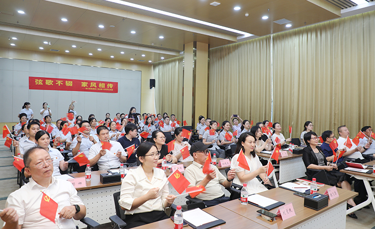 隨后,與會代表共同觀看了《習(xí)主席“典”論》視頻,學(xué)習(xí)習(xí)總書記相關(guān)用“典”,一起領(lǐng)會習(xí)總書記倡導(dǎo)的好家風(fēng),理解家風(fēng)與黨風(fēng)政風(fēng)的關(guān)系。活動現(xiàn)場,黨員代表分享了《人民領(lǐng)袖:一封字里的家風(fēng)傳承》《為父當(dāng)如梁啟超》等家風(fēng)故事。大家不僅動容于這些親情故事,更被這些家風(fēng)故事背后崇高的人格風(fēng)范、高尚的家國情懷所觸動?!凹绎L(fēng),是爺爺胡子上長長的教誨。家風(fēng),是父親臉上威嚴(yán)的表情。家風(fēng),就是母親苦口婆心的嘮叨。家風(fēng),就是家長的言傳身教……”聲情并茂的《家風(fēng)頌》誦讀和《國家》手語舞表演贏得了大家的陣陣掌聲。