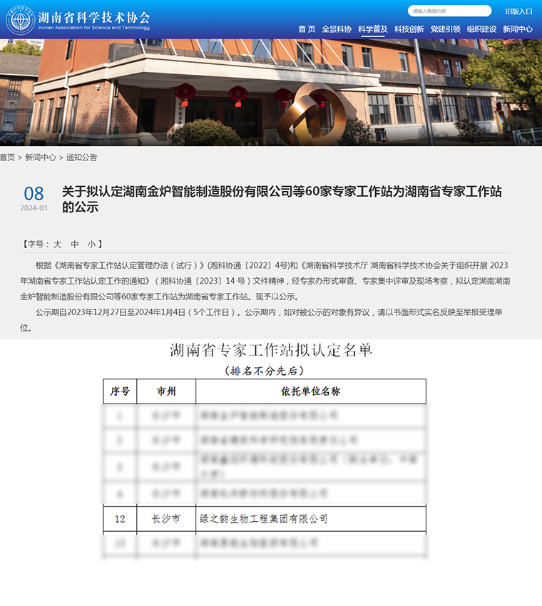 近日,根據《湖南省專家工作站認定管理辦法(試行)》(湘科協(xié)通(2022〕4號)和《湖南省科學技術廳 湖南省科學技術協(xié)會關于組織開展2023年湖南省專家工作站認定工作的通知》(湘科協(xié)通〔2023〕14號)文件精神,經專家辦形式審查、專家集中評審及現場考察,認定了66家湖南省專家工作站,綠之韻集團獲評上榜。這一榮譽不僅是對綠之韻集團在科研創(chuàng)新、人才引進及培養(yǎng)方面工作的高度認可,也標志著綠之韻集團在推動地方經濟和社會發(fā)展中所作出的努力得到了省級層面的支持。