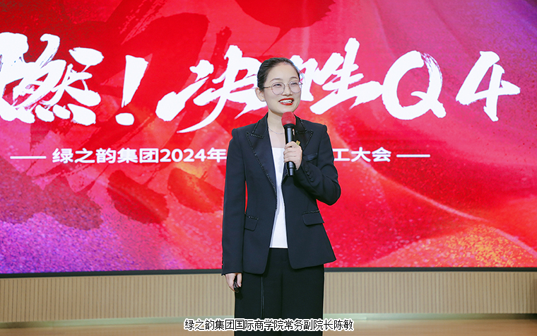 會上,綠之韻集團總裁勞嘉對所有獲獎員工致以誠摯祝賀,對各部門、市場團隊及奔赴在一線的伙伴們三個季度以來獲得的成績和辛勤付出表示真摯感謝。她表示,前三季度生產經營各項成績殊為不易,要堅定信心、乘勢而上,想干能干敢干,在公司為我們提供的舞臺上展示自己的能力;面對紛繁復雜、快速變化的市場環(huán)境,只有躬身入局長期耕耘,才能共創(chuàng)價值;2025年對于直銷行業(yè)來說將是一個嶄新的方向,各項政策利好紛紛出臺,直銷行業(yè)的生產力得到極大釋放,行業(yè)有望迎來新的增長。綠之韻的發(fā)展得益于大家的齊心協(xié)力,面對當前復雜多變的宏觀經濟形勢,提高市場業(yè)績刻不容緩,我們必須尋找新的增長點和創(chuàng)新途徑,以應對競爭壓力和市場變化,只有準確把握形勢,形成干事創(chuàng)業(yè)的工作合力,必將迎來春暖花開。同時,她圍繞客戶難題、價格難題、內卷難題作幾點分享。一是就客戶難題而言,幫助客戶多做一步,超越期待,他就可以離你更進一步;二是就產品而言,消費者不僅僅為產品價值買單,產品價值附加的功能價值、情緒價值和資產價值也值得我們思考;三是降低成本的核心,不是降低品質,而是減少浪費;四是面對內卷困境,突破內卷常態(tài),我們要做到不一樣。希望大家把這幾點運用到工作中去,難題總會解開,花總會開。距離2025年只剩90多天,我們要順應政策利好,找到市場發(fā)力方向,充分激發(fā)各市場團隊的積極性、主動性和創(chuàng)造性,希望各部門各市場團隊,通力協(xié)作,明確全年目標,一起充滿熱情地奔向2025年。
