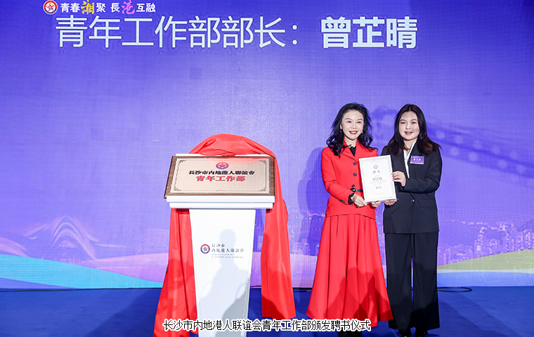 長沙市內(nèi)地港人聯(lián)誼會會長、湖南高橋大市場股份有限公司總經(jīng)理、華誼兄弟(長沙)電影文化城有限公司董事長羅曉發(fā)表致辭并宣布長沙市內(nèi)地港人聯(lián)誼會青年工作部正式成立。她表示,青年是國家的未來,是民族的希望,也是聯(lián)誼會不斷發(fā)展壯大的重要力量。成立青年工作部,是順應時代需求、推動聯(lián)誼會事業(yè)持續(xù)發(fā)展的重要舉措。聯(lián)誼會將組織各類青年交流活動,促進兩地青年在思想、文化、科技等方面的碰撞與融合,激發(fā)青年人的創(chuàng)新精神和創(chuàng)業(yè)熱情,推動青年工作部成為長沙與香港兩地青年交流合作的重要力量。她強調(diào),聯(lián)誼會一定不負眾望,以更加飽滿的熱情、更加扎實的工作作風、更加創(chuàng)新的精神,為兩地的繁榮發(fā)展作出新的更大貢獻!隨后,中共湖南省委統(tǒng)戰(zhàn)部港澳臺處處長梁良與羅曉會長共同為青年工作部揭牌,并現(xiàn)場為青年部部長、常務副部長、副部長頒發(fā)聘書。