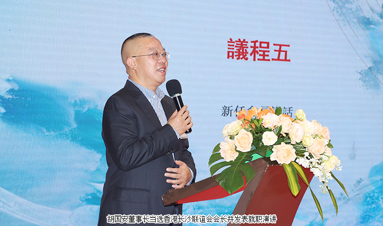 胡國安董事長在就職講話中表達了對各級領導、全體會員的感謝,并提出聯(lián)誼會將秉持 “凝聚團結聯(lián)誼、愛國愛港愛家鄉(xiāng)”的宗旨,堅定信念,強化政治引領,積極學習貫徹黨的精神指示,落實“一國兩制”方針,凝聚愛國愛港力量;加強組織建設,完善架構與制度,創(chuàng)新服務方式,提升服務質量,打造會員溫馨家園;深化湘港兩地交流合作,搭建多元平臺,促進共贏發(fā)展;積極投身社會事務,履行社會責任,助力香港繁榮穩(wěn)定與祖國繁榮富強。他表示,此次換屆大會的成功舉行,為香港長沙聯(lián)誼會注入了新的活力與動力。在新一屆領導班子的帶領下,聯(lián)誼會將繼續(xù)團結在港湘籍人士及各界力量,積極推動湘港兩地交流合作邁向更高層次、更廣領域,為兩地的繁榮發(fā)展書寫更加輝煌的篇章。