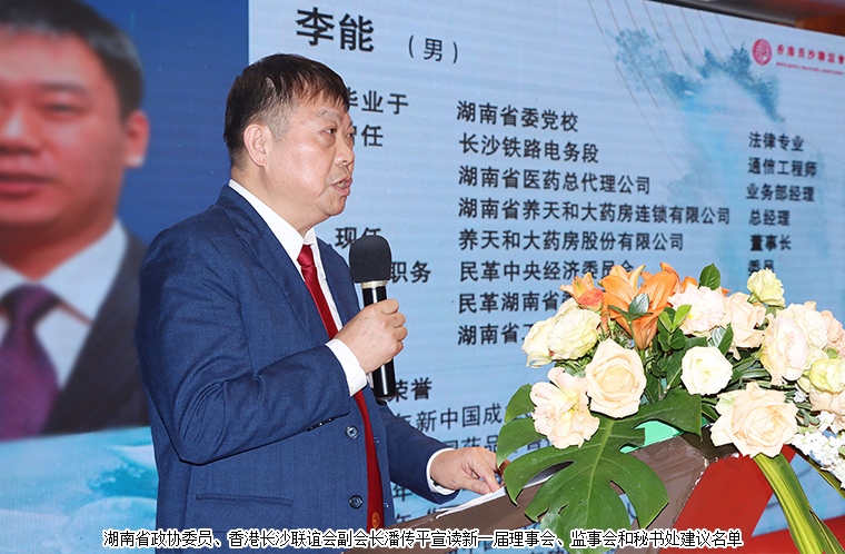 香港金融管理學院校董會主席王中英,湖南省政協(xié)常委、香港恒德利投資(集團)有限公司董事長孫易兵,香港中文大學數(shù)學人工智慧中心主任,科技部香港聯(lián)合重點專項首席科學家曾鐵勇,中國音樂家協(xié)會副主席何沐陽,香港鄭中設計事務所(CCD)(002811)創(chuàng)始人、董事長鄭忠,湖南高橋大市場董事總經(jīng)理羅曉,原香港大公文匯傳媒集團副董事長、總經(jīng)理歐陽曉晴,長沙市政協(xié)委員秦薇婷等當選名譽會長;湖南省政協(xié)委員、香港善德集團總裁張曉琴當選榮譽創(chuàng)會會長;湖南省政協(xié)委員、香港周啟邦律師事務所 、湖南人和律師事務所潘傳平主任,長沙市政協(xié)常委蔡達,長沙市政協(xié)常委、香港恒德利投資(集團)有限公司董事孫秀祖,長沙市政協(xié)委員、香港同心總會會長閔玉玲等當選常務副會長;威勝控股(03393.HK)執(zhí)行董事、首席執(zhí)行官吉喆,廣東嘉應制藥(002198)董事長、養(yǎng)天和大藥房董事長李能,長沙市人大代表、興嘉生物董事長黃逸強,第十二屆湖南省政協(xié)常委、湘雅博愛康復醫(yī)院創(chuàng)始人、執(zhí)行董事周江林,空軍政治部文工團獨唱演員、北京歌舞劇院獨唱演員米靚,香港屯門區(qū)議員、全國青聯(lián)委員、京港聯(lián)創(chuàng)會主席、清華大學法學博士陳貴和,香港銅鑼灣集團地產(chǎn)有限公司董事長陳長宗等當選副會長;長沙市政協(xié)委員、香港國際新媒體集團副總裁何苗當選監(jiān)事長;傲迪瑪汽車(08418.HK)執(zhí)行董事聶麗當選執(zhí)行秘書長;湖南省慈善總會副會長、湖南省海外聯(lián)誼會副會長、綠之韻集團董事長胡國安憑借其卓越的領導能力和豐富的管理經(jīng)驗當選為新一屆會長。