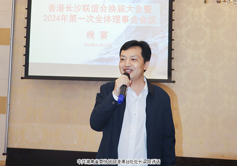 湘港攜手,共譜新篇。2024年11月17日,香港長沙聯(lián)誼會第二屆理事會會議暨2024年第一次全體理事會會議隆重召開。中共湖南省委統(tǒng)戰(zhàn)部港澳臺處處長梁良,中共長沙市委統(tǒng)戰(zhàn)部副部長、市僑辦主任楊光華,長沙市委統(tǒng)戰(zhàn)部港澳處(僑務處)處長趙敏,副處長譚林,二級主任科員王華銘等領導出席晚宴與新一屆理事會成員齊聚一堂,共同見證這一歷史性的重要時刻,奏響湘港合作的嶄新樂章。