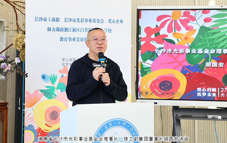 青少年是祖國的花朵,是祖國未來的希望,用愛的行為幫助他們健康成長,是我們作為一家企業(yè)最大的“德”。胡國安董事長在講話中說道,作為湖南省長沙市光彩事業(yè)基金會理事長,自成立以來,基金會在市委市政府的領(lǐng)導(dǎo)下,在全體理事會成員的支持下,用實際行動踐行光彩精神,積極參與了多項公益事業(yè)項目,累計募集款物4143萬元,捐贈款物3728萬元,為促進(jìn)省市經(jīng)濟社會發(fā)展貢獻(xiàn)了民營經(jīng)濟力量。他表示,企業(yè)小的時候是自己的,發(fā)展壯大了就是國家的、社會的。多年來,他帶領(lǐng)企業(yè)綠之韻集團始終堅持弘揚光彩精神,把公益事業(yè)提升到企業(yè)發(fā)展戰(zhàn)略高度。21年來,在全國先后援建了11所希望學(xué)校,投入300萬元開展了“綠韻圓夢?書香助學(xué)”活動,投入1000萬元開展了“樹人行動”,投入1000萬元成立“圓夢”基金助力教育振興……累計捐贈款物已達(dá)8600多萬元。他希望通過這次捐贈,能夠為改善學(xué)校的辦學(xué)條件、豐富孩子們的學(xué)習(xí)生活貢獻(xiàn)一份力量。同時,他也將用行動來呼吁,讓更多社會上的愛心力量共同來關(guān)注教育事業(yè)、關(guān)愛青少年,讓孩子們幸??鞓返爻砷L。他相信,在大家的共同努力下,白箬鋪鎮(zhèn)中心學(xué)校的明天一定會更美好!