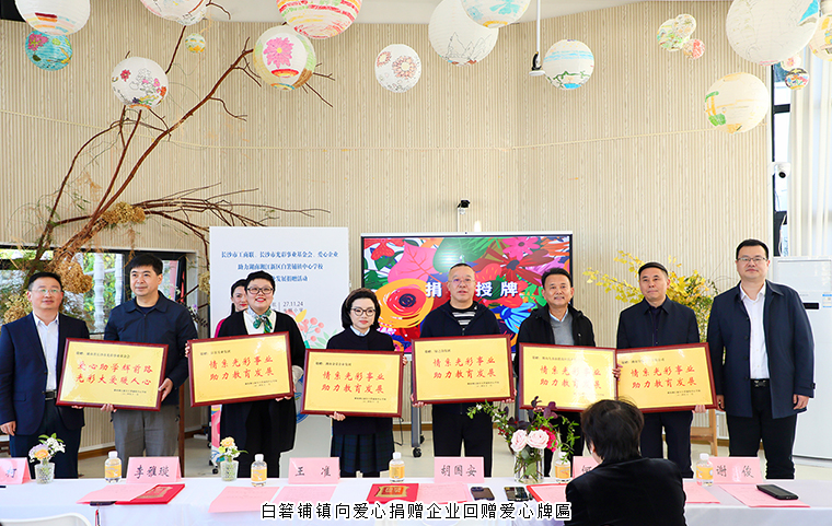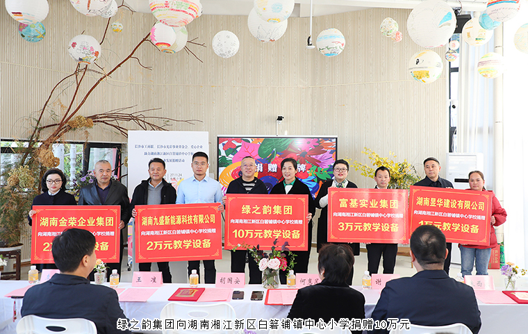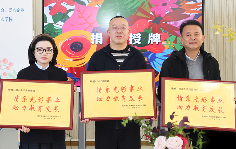 百年大計,教育為本。捐贈儀式上,愛心企業(yè)向?qū)W校捐贈愛心支票。此次,綠之韻集團共計向湖南省長沙市光彩事業(yè)基金會捐資40萬元助力光彩事業(yè)?;顒蝇F(xiàn)場,綠之韻集團董事長胡國安向湖南湘江新區(qū)白箬鋪鎮(zhèn)中心小學(xué)捐贈10萬元用于購置教學(xué)設(shè)備。隨后,白箬鋪鎮(zhèn)中心學(xué)校、光明小學(xué)、仁和小學(xué)、古沖小學(xué)、金城幼兒園向愛心企業(yè)回贈愛心牌匾。