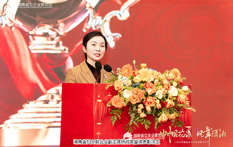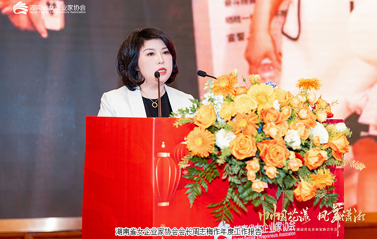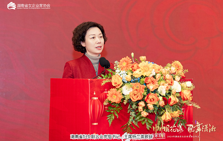 湖南省婦女聯(lián)合會黨組書記、主席楊蘭英致辭。她代表湖南省婦聯(lián),向本次年會的召開表示熱烈祝賀,向與會的各位姐妹表示誠摯歡迎,向長期以來關心支持湖南經(jīng)濟發(fā)展和婦女事業(yè)的女企業(yè)家們表示衷心感謝。她向全體女企業(yè)家提出了四點希望:堅守初心,以更高站位把牢正確方向;堅定信心,以更大力度深耕湖南發(fā)展;傳遞愛心,以更暖情懷感恩回饋社會;播撒真心,以更實行動倡揚文明新風。她表示,湖南省女企業(yè)家協(xié)會作為省婦聯(lián)的團體會員,要進一步堅持黨建引領,深化服務品牌,擴大有效覆蓋,把協(xié)會建成合作交流的平臺、創(chuàng)新創(chuàng)業(yè)的舞臺、互相支持的溫暖娘家。湖南省婦聯(lián)也將一如既往為大家送政策、搭平臺、解難題,全力支持協(xié)會開展工作。