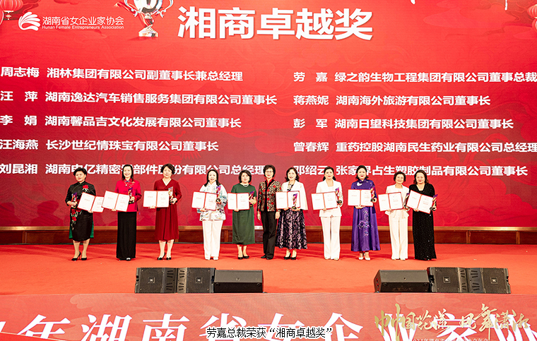 華燈初上,盛會啟幕,現(xiàn)場仿若星漢燦爛,逸彩流光。女企業(yè)家們華裳盛妝,從紅毯一方款款走來,盡顯瀟湘巾幗的非凡韻致。自湖南省女企業(yè)家協(xié)會成立以來,涌現(xiàn)了一大批優(yōu)秀的女性企業(yè)家。她們平日里置身職場,以睿智能謀運籌帷幄,揮斥方遒,領袖群倫;今朝,她們化身為新時代的女性楷模,以獨特魅力,重塑湘商形象,樹立時代新范。為發(fā)揚其精神品質,激勵會員單位承擔社會責任、合力辦會愛會,大會集中為獲得“湘商卓越獎”“優(yōu)秀企業(yè)獎”“湘商貢獻獎”“湘商創(chuàng)新獎”“湘商奮斗獎”“優(yōu)秀黨員獎”“優(yōu)秀團體獎”的女企業(yè)家們進行了表彰及頒獎,以激勵更多女性創(chuàng)業(yè)者砥礪前行,為湖南經(jīng)濟發(fā)展貢獻力量。勞嘉總裁憑借其在企業(yè)管理、商業(yè)創(chuàng)新以及社會責任等多方面的杰出表現(xiàn),被授予“湘商卓越獎”。