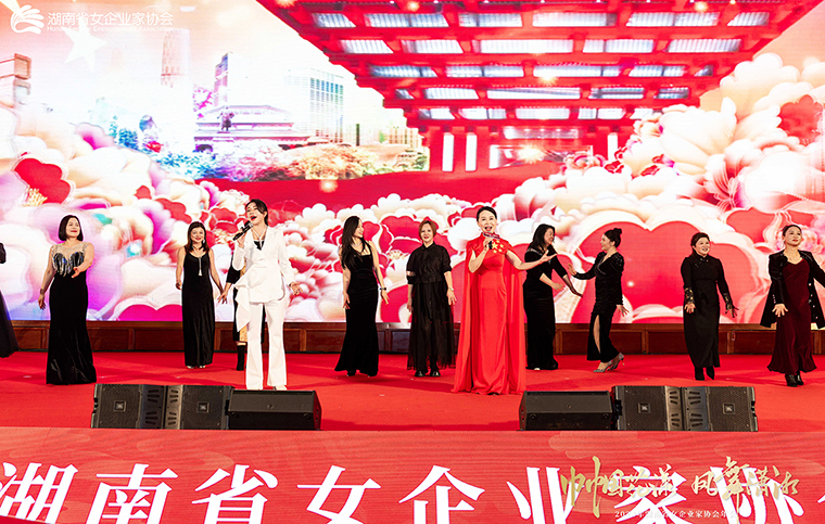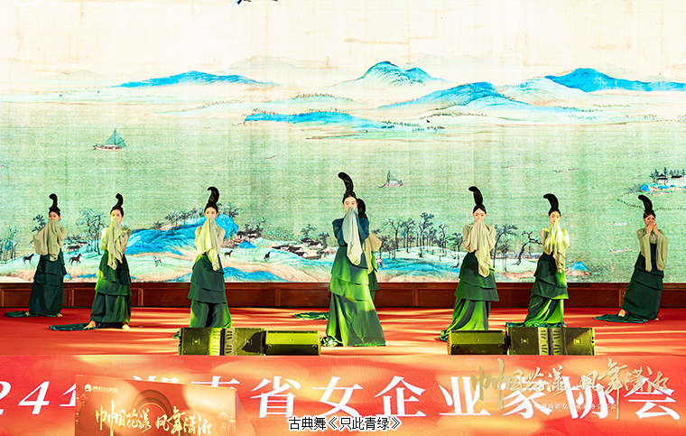 晚宴現(xiàn)場,表演的華彩篇章逐一鋪展?!吨淮饲嗑G》重現(xiàn)經(jīng)典,舞者仿若翠影搖曳于山水長卷,衣袂似青云流嵐,以靈動妙姿繪就千年詩意,古韻仿若幽夢沁人心脾。各地市州女企協(xié)帶來的表演如璀璨星辰,觀眾置身藝術蒼穹,沉醉、流連,掌聲與喝彩如雷鳴潮涌,為晚宴繪就絢麗盛景。