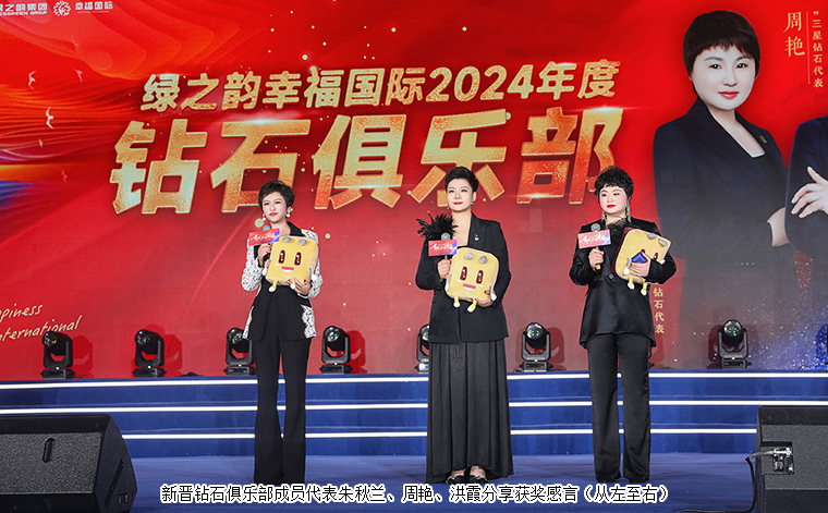 璀璨鉆石,如耀眼星辰,綻放光芒萬丈。鉆石的光輝,映照著他們無畏無懼、奮勇向前的堅毅身影;熠熠華彩,照亮了奮進的拼搏征程。他(她)們,作為萬千幸福代言人的榜樣,已然成為幸福國際蓬勃發(fā)展的中堅力量,更是驅動市場滾滾向前的磅礴力量。綠之韻集團總裁勞嘉,幸福國際市場商學院特聘教授、綠韻悅喜智能科技有限公司首席研發(fā)專家駱春崗,綠韻悅喜智能科技有限公司總經(jīng)理楊邢軒,綠之韻幸福國際市場商學院執(zhí)行院長廖鵬,綠之韻幸福國際市場商學院副院長袁夢分別為2024年度新晉一星、二星、三星鉆石俱樂部成員頒發(fā)榮耀勛章。獲獎代表周艷、洪霞、朱秋蘭,滿懷激動與感恩,依次分享獲獎感言。