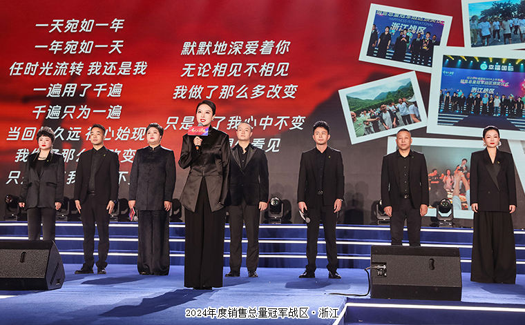 于灼灼目光的交匯中采擷奮進力量,讓矢志不渝的初心仿若熠熠星辰,恒暖不熄。他(她)們無畏無懼地在市場馳騁,盡情揮灑光與熱,宛如璀璨星辰照亮逐夢征途。各戰(zhàn)區(qū)凝心聚力,同頻共振,以硬核之姿毅然出征,活力澎湃四溢,傾盡全力拼搏奮進。綠之韻集團總裁勞嘉,常務副總裁胡均安,副總裁、幸福導師夏運良,市場營銷中心總經(jīng)理戴三省、國際商學院執(zhí)行院長黎芋成分別為“2024年度銷售總冠軍浙江戰(zhàn)區(qū)”“2024年度銷售增長總量冠軍廣東戰(zhàn)區(qū)”“2024年度銷售增長率冠軍四川戰(zhàn)區(qū)”頒發(fā)榮譽。