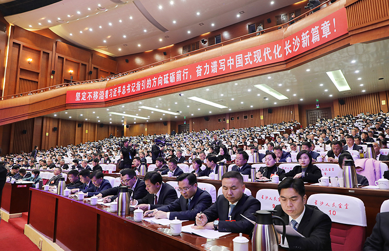 長沙市人大常委會主任文樹勛主持會議并宣布大會開幕。會場全體起立,高唱國歌。在熱烈的掌聲中,湖南省人民政府副省長、長沙市委副書記、市長周海兵向大會報告政府工作。報告共分兩個部分:一是2024年工作回顧;二是2025年工作重點。周海兵說,過去一年,我們在省委、省政府和市委的堅強(qiáng)領(lǐng)導(dǎo)下,堅持以習(xí)近平新時代中國特色社會主義思想為指導(dǎo),全面落實黨的二十大和二十屆二中、三中全會精神,深入貫徹習(xí)近平總書記考察湖南重要講話和指示精神,錨定“三高四新”美好藍(lán)圖,按照省委“八個走在前、作示范”和 “七個堅定不移”總要求,全力實施“八大行動”,深入推進(jìn)“產(chǎn)業(yè)質(zhì)效倍增年”“擔(dān)當(dāng)善為落實年”建設(shè),攻堅克難、砥礪前行,有效應(yīng)對復(fù)雜嚴(yán)峻形勢,有力統(tǒng)籌各項事業(yè)發(fā)展,交出了高質(zhì)量發(fā)展和現(xiàn)代化建設(shè)的新答卷。
