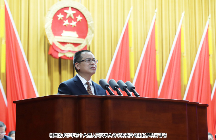 新當(dāng)選的長沙市第十六屆人民代表大會常務(wù)委員會主任羅纘吉講話。他表示,定將倍加珍惜組織信任,不負(fù)人民重托,在市委堅強(qiáng)領(lǐng)導(dǎo)下,和市人大常委會組成人員一起,同全體人大代表一道,堅持黨的領(lǐng)導(dǎo)、人民當(dāng)家作主、依法治國有機(jī)統(tǒng)一,把過往的成績總結(jié)好,把有益的經(jīng)驗提煉好,把精彩的事業(yè)接續(xù)好,知責(zé)擔(dān)責(zé)、知重負(fù)重,綿綿用力、久久為功,以實干展現(xiàn)新作為、用實績交出新答卷,奮力譜寫長沙人大工作繼往開來的新篇章。