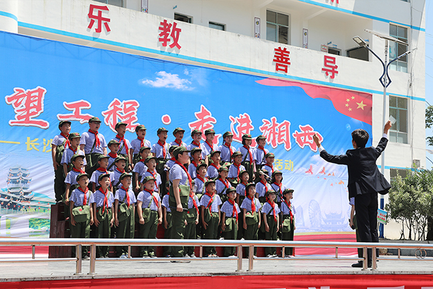 捐贈(zèng)儀式結(jié)束后,長沙市青少年宮組織藝術(shù)團(tuán)的小演員們與苗兒灘學(xué)校的學(xué)生們共同獻(xiàn)上了一場(chǎng)豐富多彩的文藝演出。孩子們用動(dòng)人的歌聲、歡快的舞姿、動(dòng)感的表演,充分展現(xiàn)了他們朝氣蓬勃、昂揚(yáng)向上的精神風(fēng)貌。