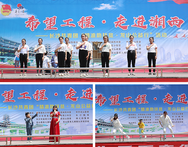 2019年5月21-23日,希望工程·走進(jìn)湘西——長沙共青團(tuán)“精準(zhǔn)助扶貧·龍山公益行”活動(dòng)在龍山縣苗兒灘鎮(zhèn)九年制學(xué)校舉行。共青團(tuán)長沙市委副書記康然、何平,長沙市直機(jī)關(guān)工委委員、宣傳部長陳國勝,共青團(tuán)湘西州委副書記王丹子,中共龍山縣委常委、縣人民政府副縣長張紅民,長沙市青基會(huì)羊舒麟等領(lǐng)導(dǎo)出席活動(dòng)。綠之韻集團(tuán)黨委書記劉云及愛心企業(yè)、社會(huì)愛心人士、受助學(xué)生代表等1000余人參加本次活動(dòng)。