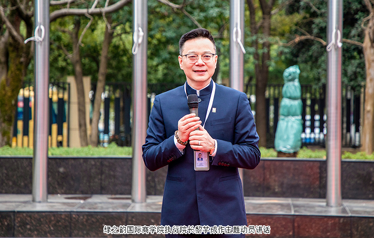 開工儀式上,綠之韻國際商學(xué)院執(zhí)行院長黎芋成作主題動員講話。他分享三個詞。第一是幸福。幸福,是一種強(qiáng)大的驅(qū)動力。它不像高壓的任務(wù),讓你被迫前行,而是像春日暖陽,溫柔地推著你主動奮進(jìn)。當(dāng)我們真正熱愛這份工作,從工作成果里獲得成就感,內(nèi)心就會被幸福填滿,這種幸福會轉(zhuǎn)化為源源不斷的動力,讓我們面對難題時,不再望而卻步,而是積極尋找解決辦法。第二是接納。不管外界怎么變化,內(nèi)心淡定從容接納一切的發(fā)展,永遠(yuǎn)懷一顆樂觀心態(tài),不斷地去創(chuàng)造。就像《哪吒之魔童鬧海》中的超燃臺詞:若前方無路,我便踏出一條路;若天地不容,我就扭轉(zhuǎn)這乾坤。作為綠之韻人一定要有這樣一種積極樂觀的態(tài)度和精神。第三是堅(jiān)持。不斷保持初心,保持恒心,這是我們在激烈市場競爭中脫穎而出、實(shí)現(xiàn)長遠(yuǎn)發(fā)展的關(guān)鍵。相信只要我們齊心協(xié)力,行動并堅(jiān)持,始終保持初心與恒心,就沒有克服不了的困難,沒有實(shí)現(xiàn)不了的目標(biāo)。2025年已至,讓我們緊緊握住心中那團(tuán)熱愛的火焰,懷揣創(chuàng)新的火種,步履不停。只要熱情不減,創(chuàng)造不止,定能在新的一年創(chuàng)造更大的輝煌。請相信,時間會見證我們的成長,時間會給予我們堅(jiān)持的答案。