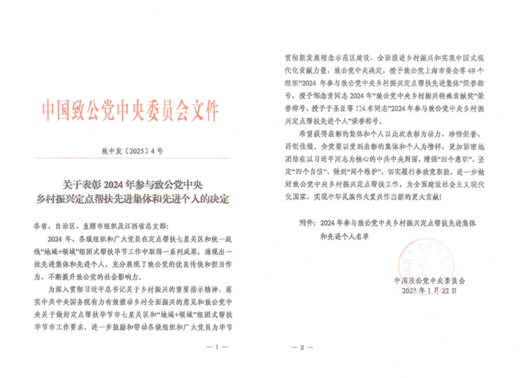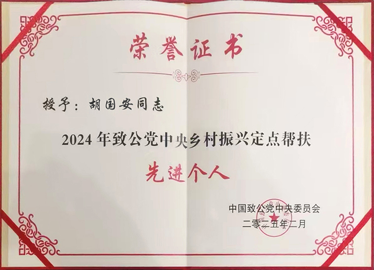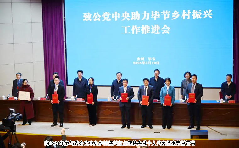2024年,全國各級組織和廣大黨員在定點(diǎn)幫扶七星關(guān)區(qū)和統(tǒng)一戰(zhàn)線“地域+領(lǐng)域”組團(tuán)式幫扶畢節(jié)工作中取得一系列成果,涌現(xiàn)出一批先進(jìn)集體和先進(jìn)個(gè)人,充分展示了致公黨的優(yōu)良傳統(tǒng)和擔(dān)當(dāng)作為,不斷提升致公黨的社會影響力。會議表彰了2024年參與致公黨中央鄉(xiāng)村振興定點(diǎn)幫扶先進(jìn)集體和先進(jìn)個(gè)人。長沙市人大代表、致公黨湖南省委會“數(shù)字互聯(lián)”委員會名譽(yù)主任、綠之韻集團(tuán)董事長胡國安榮獲“2024年度致公黨中央鄉(xiāng)村振興定點(diǎn)幫扶先進(jìn)個(gè)人”榮譽(yù)稱號。