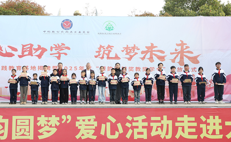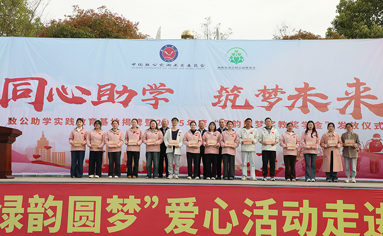 為營造濃厚的關心人才、尊重人才、支持人才以及愛學、勤學、好學、比學的濃厚氛圍,2023年,致公黨湖南省委會、湖南省綠之韻公益基金會“綠韻圓夢行動”捐贈50萬元愛心資金用于在安化大橋?qū)W校設立“獎教獎學金”,支持鄉(xiāng)村振興文化建設和教育事業(yè)發(fā)展。4月2日,致公助學實踐教育基地揭牌暨2025年度“綠韻圓夢獎教獎學金”發(fā)放儀式再次走進安化縣冷市鎮(zhèn)大橋?qū)W校,為鄉(xiāng)村教育注入了新的活力。