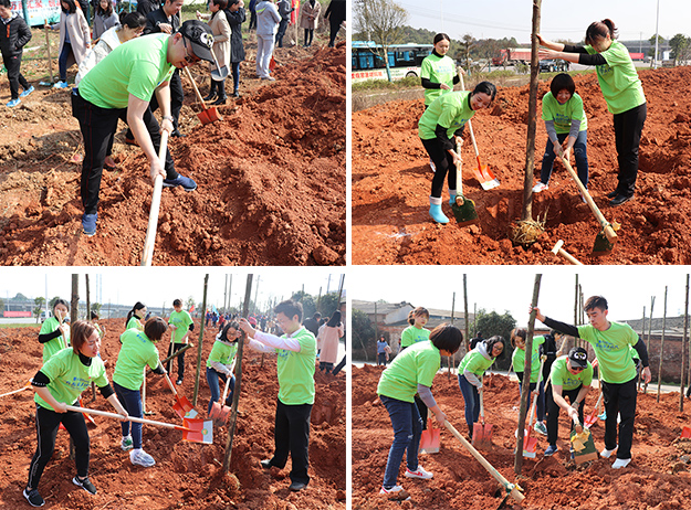 上午十時許,綠之韻家人們一行統(tǒng)一乘坐著大巴車來到了種植區(qū)。在領(lǐng)取完自己的鋤頭、鏟子等勞動工具之后,綠之韻家人們興致高昂地投入到了植樹造林的行動中……