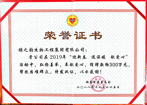 綠之韻集團(tuán)董事總裁、綠之韻公益基金會(huì)理事長(zhǎng)勞嘉代表愛(ài)心企業(yè)在發(fā)言中說(shuō)道,非常榮幸能受省民政廳、省慈善總會(huì)的邀請(qǐng),參與2019全省“迎新春送溫暖獻(xiàn)愛(ài)心”活動(dòng),為幫扶貧困地區(qū)的困難群體獻(xiàn)出一份愛(ài)心。綠之韻集團(tuán)作為湖南省慈善總會(huì)的副會(huì)長(zhǎng)單位,在胡國(guó)安董事長(zhǎng)的帶領(lǐng)下,一直秉承著“關(guān)愛(ài)生命、造福人類”的企業(yè)理念,在發(fā)展實(shí)業(yè)的同時(shí),積極承擔(dān)社會(huì)責(zé)任,產(chǎn)業(yè)富民,回饋社會(huì)。十五年愛(ài)心之旅,綠之韻陸續(xù)在全國(guó)捐建了11所希望小學(xué),打造了“關(guān)愛(ài)貧困母親”“關(guān)愛(ài)百歲老人”“樹(shù)人行動(dòng)”“綠韻圓夢(mèng)·書(shū)香助學(xué)”等12大公益品牌、100多項(xiàng)公益項(xiàng)目。同時(shí),通過(guò)“線上+線下愛(ài)心集結(jié)”“健康+公益”等現(xiàn)代公益創(chuàng)新模式,更大力度、廣度、深度地參與到教育、醫(yī)療、賑災(zāi)、扶貧、幫困等公益事業(yè)。截至2018年底,綠之韻開(kāi)展了400多場(chǎng)愛(ài)心活動(dòng),匯聚了6萬(wàn)多名愛(ài)心志愿者,捐助款物6700多萬(wàn)元,足跡遍布全國(guó)20多個(gè)省市和地區(qū),用實(shí)際行動(dòng)履行著企業(yè)應(yīng)盡的責(zé)任和義務(wù)。此次,綠之韻集團(tuán)向湖南慈善總會(huì)捐贈(zèng)愛(ài)心款物300萬(wàn)元用于對(duì)貧困地區(qū)困難群眾的幫扶慰問(wèn),希望能匯點(diǎn)滴之愛(ài),聚江海之力,號(hào)召更多的社會(huì)愛(ài)心人士共同參與到“迎新春送溫暖獻(xiàn)愛(ài)心”的活動(dòng)中,為全省打贏脫貧攻堅(jiān)戰(zhàn)、為建設(shè)富饒美麗幸福新湖南貢獻(xiàn)出自己的力量!