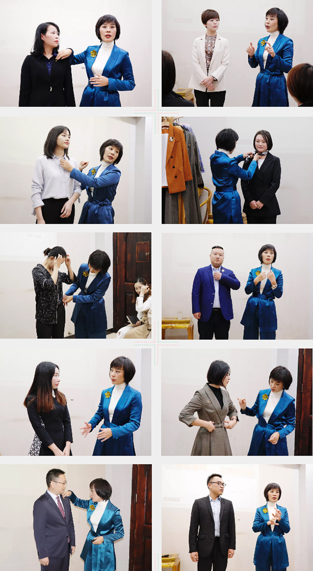 在下午的職場禮儀培訓(xùn)課上,國家高級禮儀培訓(xùn)師、中國女性形象工程禮儀培訓(xùn)師、人社部中國職工教育和職業(yè)培訓(xùn)協(xié)會高級禮儀講師彩蝶由淺入深的向大家講述了職場服飾形象的三個層面:心理層面、生理層面和社會層面。同時進(jìn)行現(xiàn)場教學(xué),就學(xué)員今天的著裝進(jìn)行一對一的指導(dǎo),讓學(xué)員們在了解職場專業(yè)著裝禮儀的同時,更加注重學(xué)員個人形象IP的塑造。