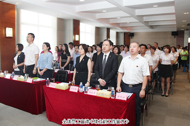 綠韻同心,攜力同行。2018年7月24日,綠之韻集團2018年上半年度員工大會成功召開。綠之韻集團董事長胡國安、董事總裁勞嘉攜集團高管及全體員工參加會議。