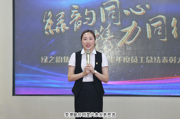 會議在全體職員整齊背誦《綠之韻工作宣言》的誦讀聲中拉開序幕。會上,上半年新入職的員工上臺做自我介紹,并獻上精心準(zhǔn)備的節(jié)目表演,他們作為新鮮血液,進一步增強了公司的創(chuàng)造與創(chuàng)新能力。本次會議以“綠韻同心·攜力同行”為主題,綠之韻集團總理劉維利就上半年市場管理及服務(wù)情況作總結(jié)匯報。