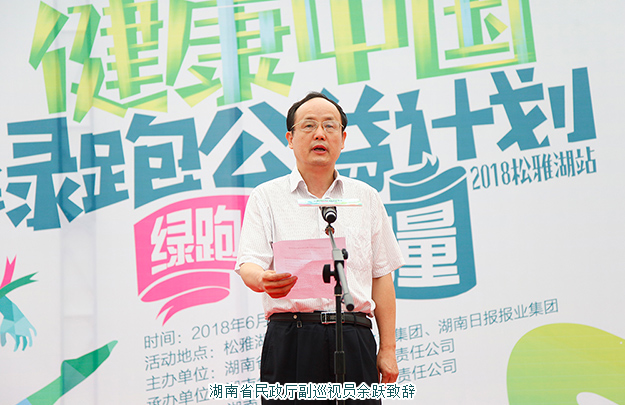 湖南省民政廳副巡視員余躍上臺致辭。他表示,“綠跑”不僅是一次全民健身活動,更是一次公益幫扶的生動實踐。他呼吁更多的愛心人士、企業(yè)加入到公益綠跑的行列,共同關(guān)愛貧困母親的身體健康,為建設(shè)富饒美麗幸福新湖南貢獻力量。