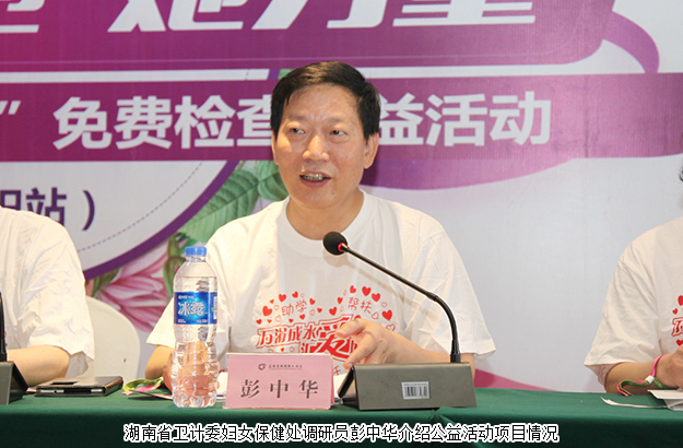 啟動儀式上,湖南省衛(wèi)計委婦女保健處調(diào)研員彭中華介紹公益活動項目情況。關愛女性健康“兩癌”免費檢查公益活動是由省委統(tǒng)戰(zhàn)部發(fā)起并統(tǒng)籌組織,各地市州相關部門,省海外聯(lián)誼會協(xié)助執(zhí)行,綠之韻集團支持參與的大型公益項目。其目的是在幫助貧困家庭婦女享受到“兩癌”的檢測與防范科普宣傳有效預防與避免婦女“兩癌”的患病與惡化風險,在宣傳兩癌科普知識的同時倡導國民踐行健康的生活狀態(tài)。